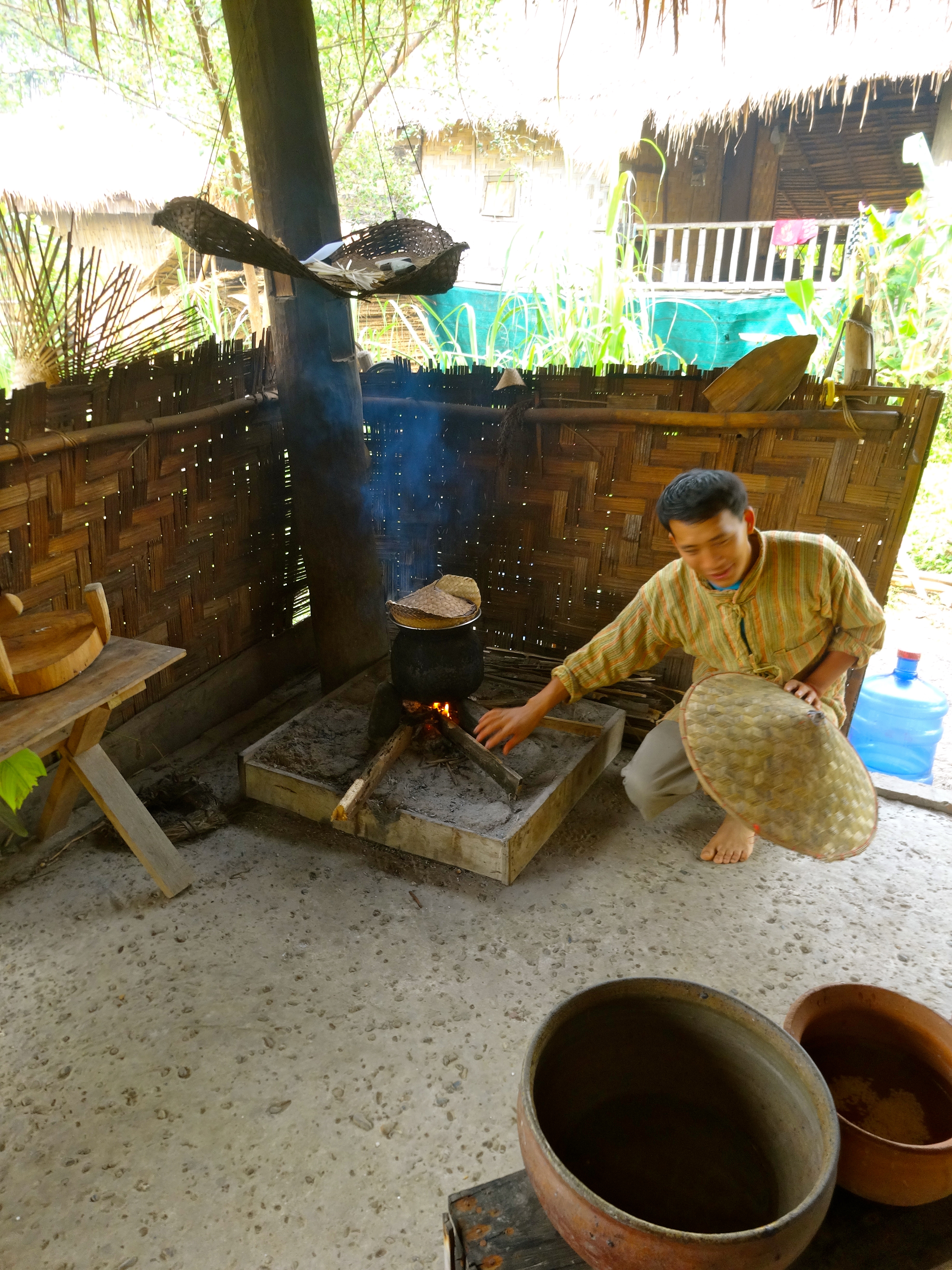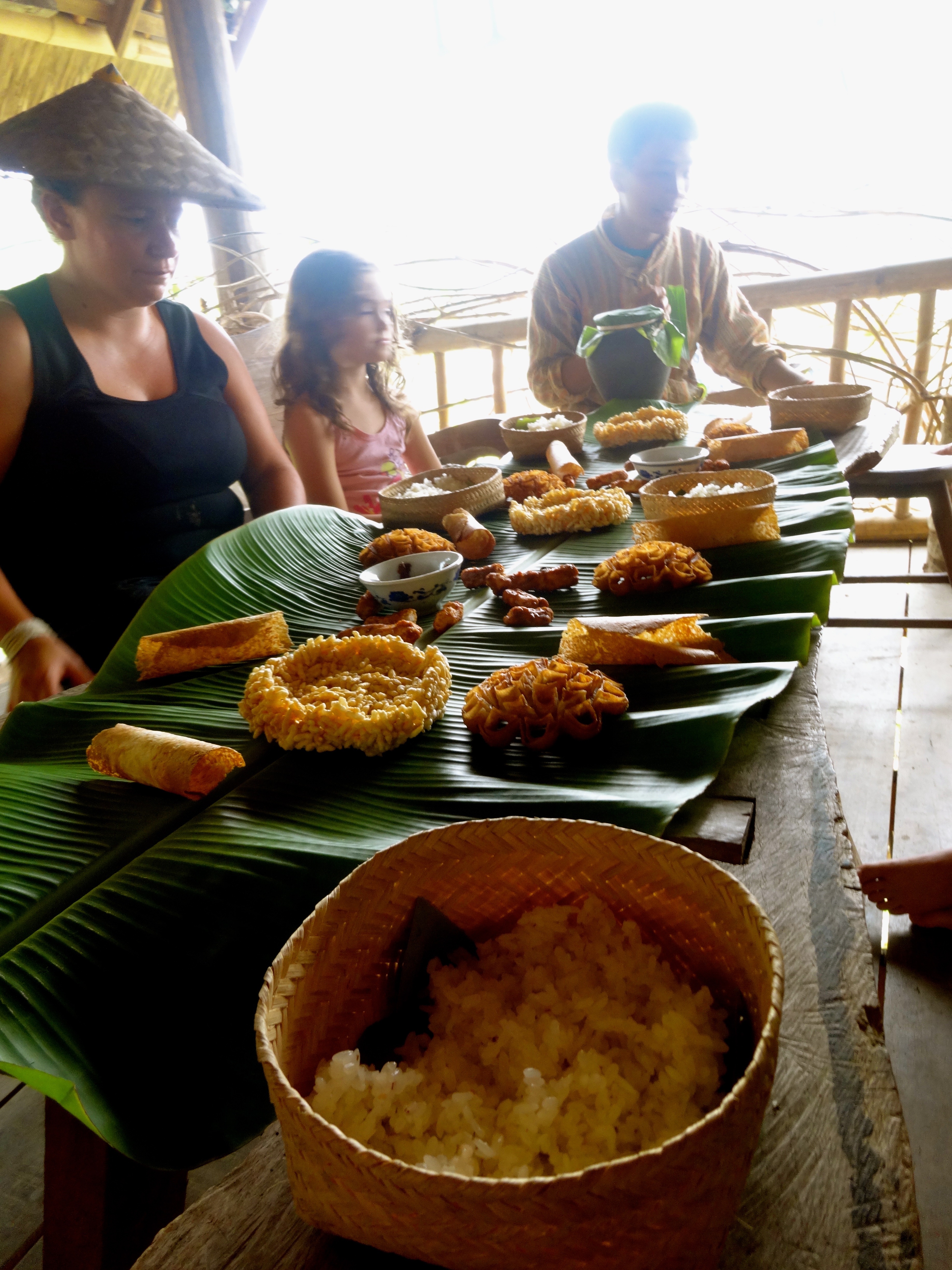While learning the process of seed to table was interesting, what was even more fascinating was Laut Lee’s story. Lee grew up in the mountains about five hours north of Luang Prabang, hunted for his food every day in the forest and did his best to help provide for his family. He didn’t have much opportunity for school and if he had stayed there, he would have lived a very simple, and likely meager life. As we ate our rice treats, I asked him more about his story and he explained that while hunting one day, he observed planes flying over the mountains headed for Luang Prabang, and he thought, “I want to go there”. During his teenage years, he found a way to get to Luang Prabang, engage with the local community there, and slowly form his vision.