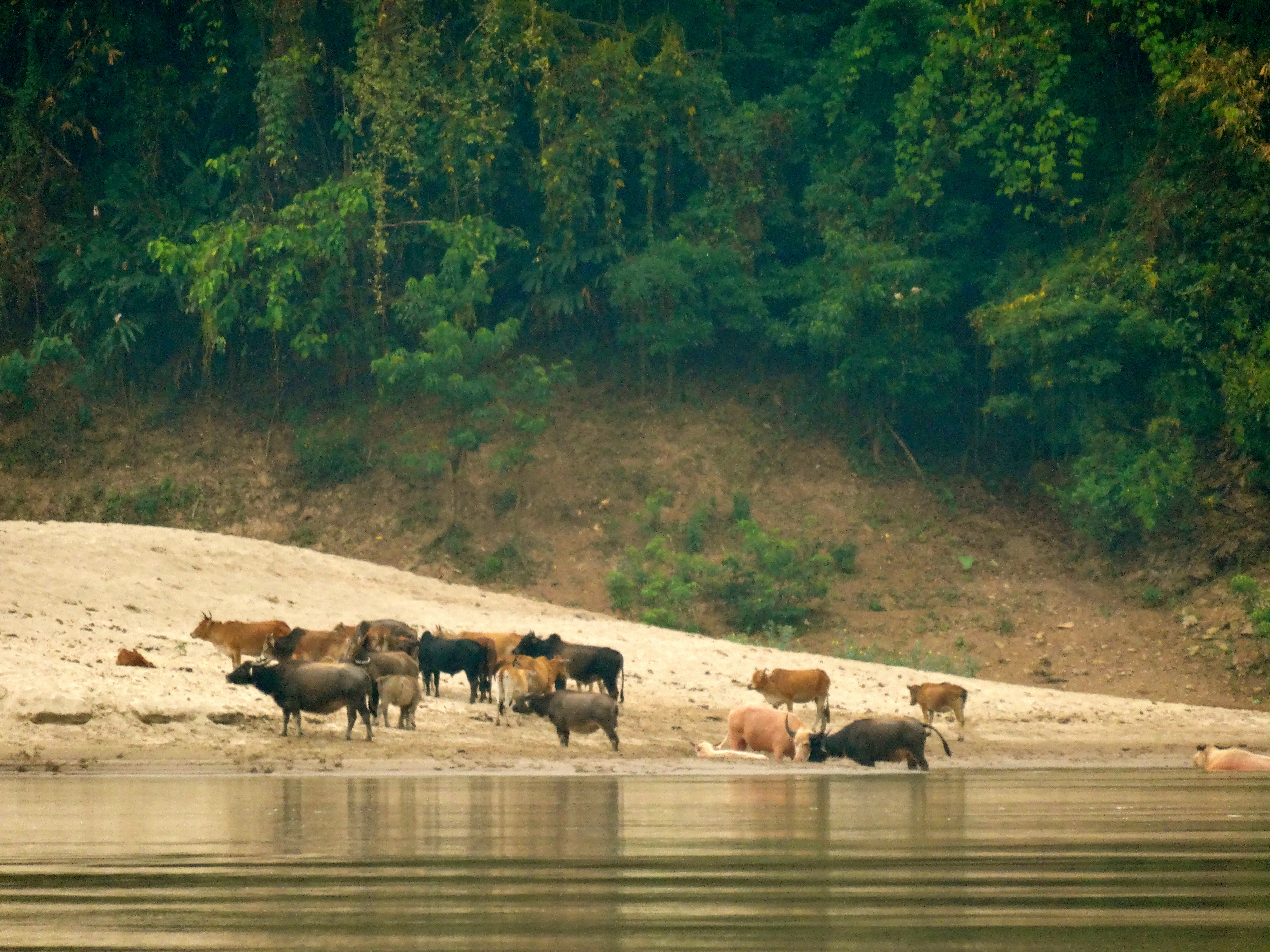 As we soared along the water, we passed small villages, grazing cows, water buffalo coming to the banks to submerge