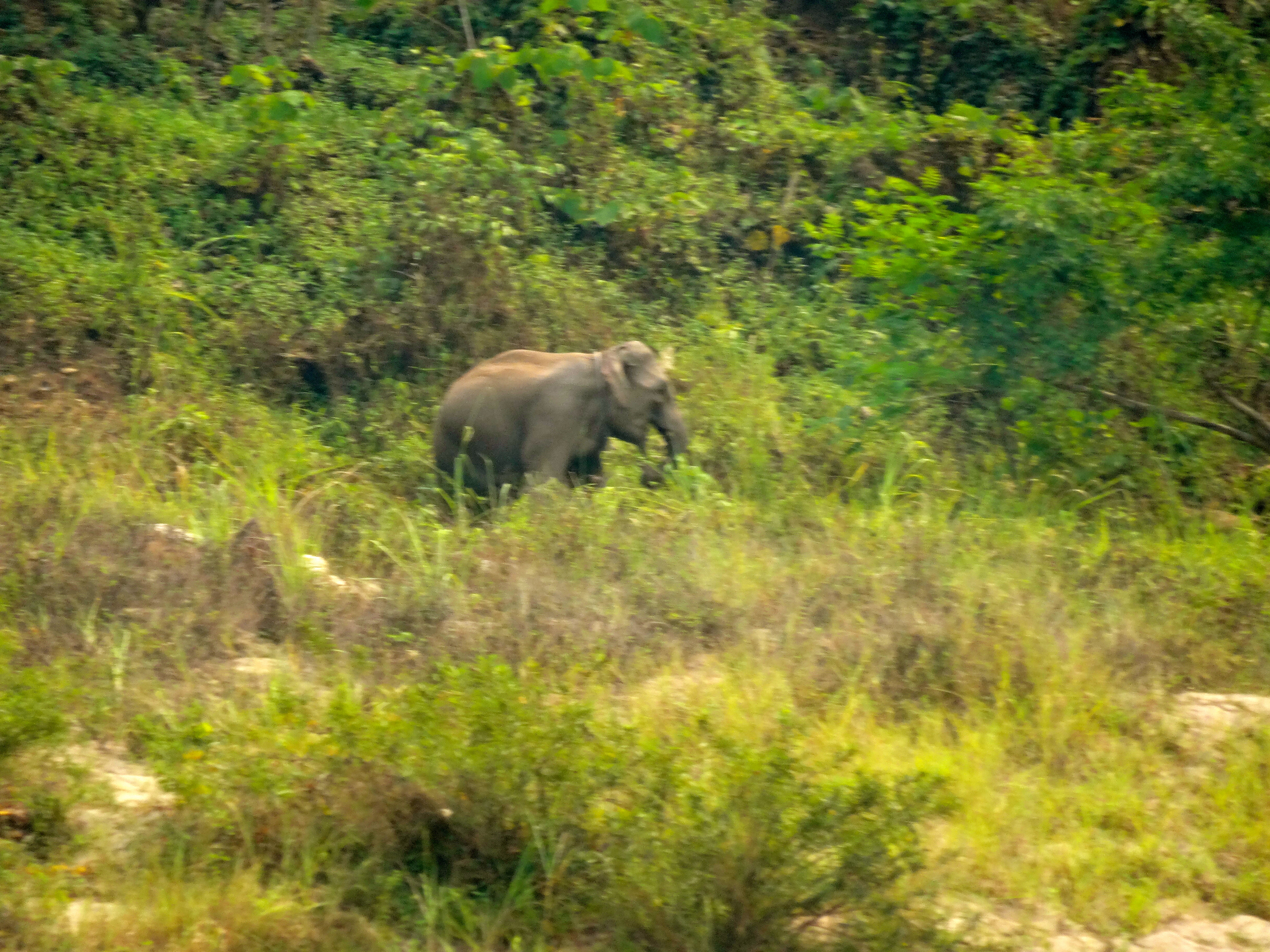 I had negotiated a front seat on the latter half of the ride with the guy who had been sitting up front for the first half of our long haul because the passenger next to him was not going further. This meant that I could occasionally unfold my legs and stretch them over the bags in the front. As we pulled away from our barge and back onto the river, the sun was finally shining and I spotted an elephant along the banks standing amid some trees… surreal. It was one thing to see an elephant on a managed reserve safari when I was in South Africa last year, but seeing one randomly in the wild when I wasn’t expecting it was really magnificent.  The rest of the afternoon was far more bearable than the morning because we stopped regularly to let passengers off and on the boat and hour by hour we