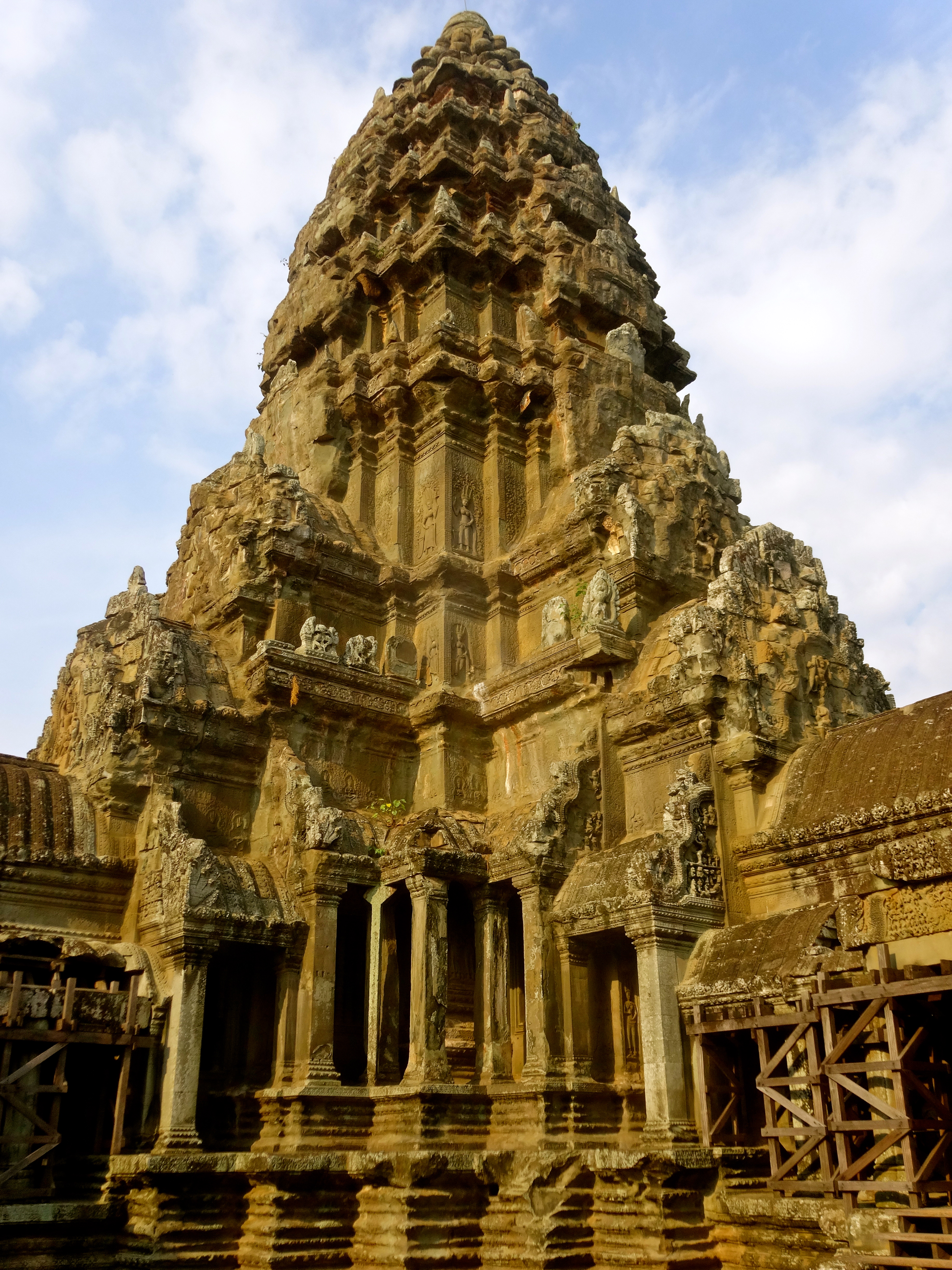 our guide’s recanting of its rocky history. After the sun had risen, we walked inside and toured all of the temple’s nooks and crannies, gazing in amazement at the intricate etchings in the stone walls,