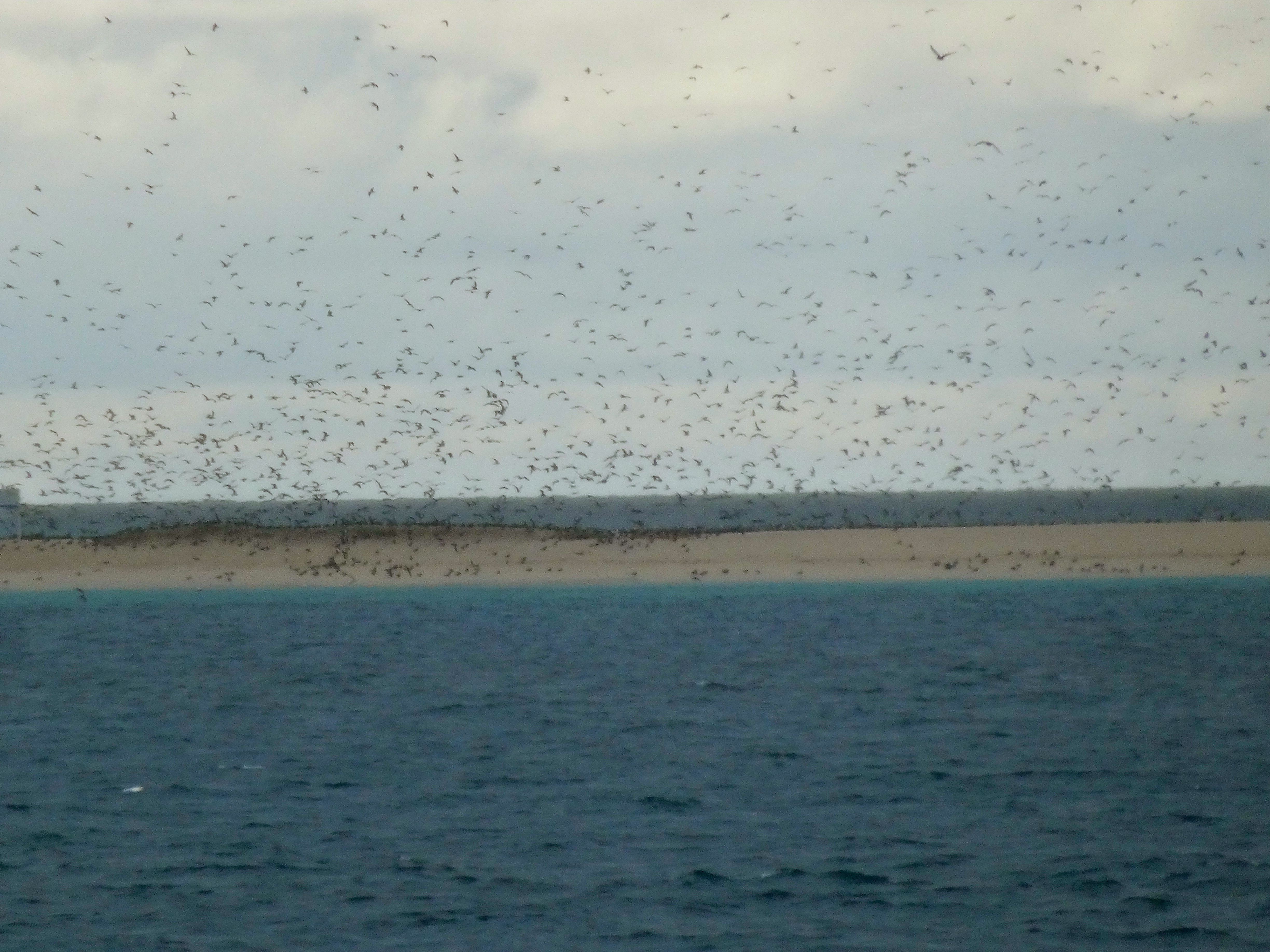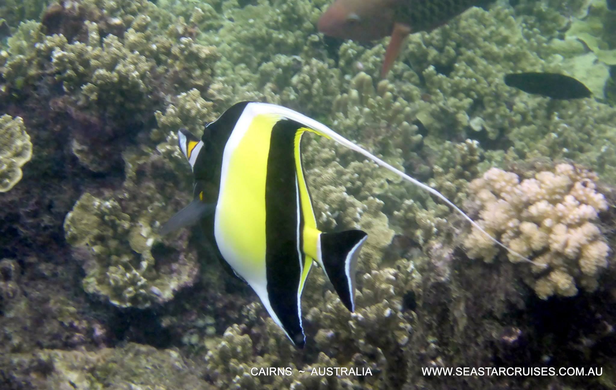 We arrived at our first spot on the reef, Michaelmas Cay, and the boat crew briefed us on the types of fish we might see, which included reef sharks, barramundi, angelfish, and all sorts of other colorful specimens including jellyfish. They completely glossed over the fact that these waters are home to the box jellyfish, the most deadly jellyfish in the world, and that this is the season they’re found on the reef. Instead, the crew showed us the smaller jellyfish variety, which rarely stings and when it does, it feels like a tingle (so they said). However, no one was allowed into the water without wearing a stinger suit. Now, I’m an adventurous person, but that doesn’t mean that I don’t have fear. And let me tell you, I was definitely feeling something that resembled fear. Perhaps I could best describe it as trepidation. Fortunately, it was all tangled up with excitement and curiosity, so I took a few deep breaths, pulled on my stinger suit and mask, and jumped in the water.
