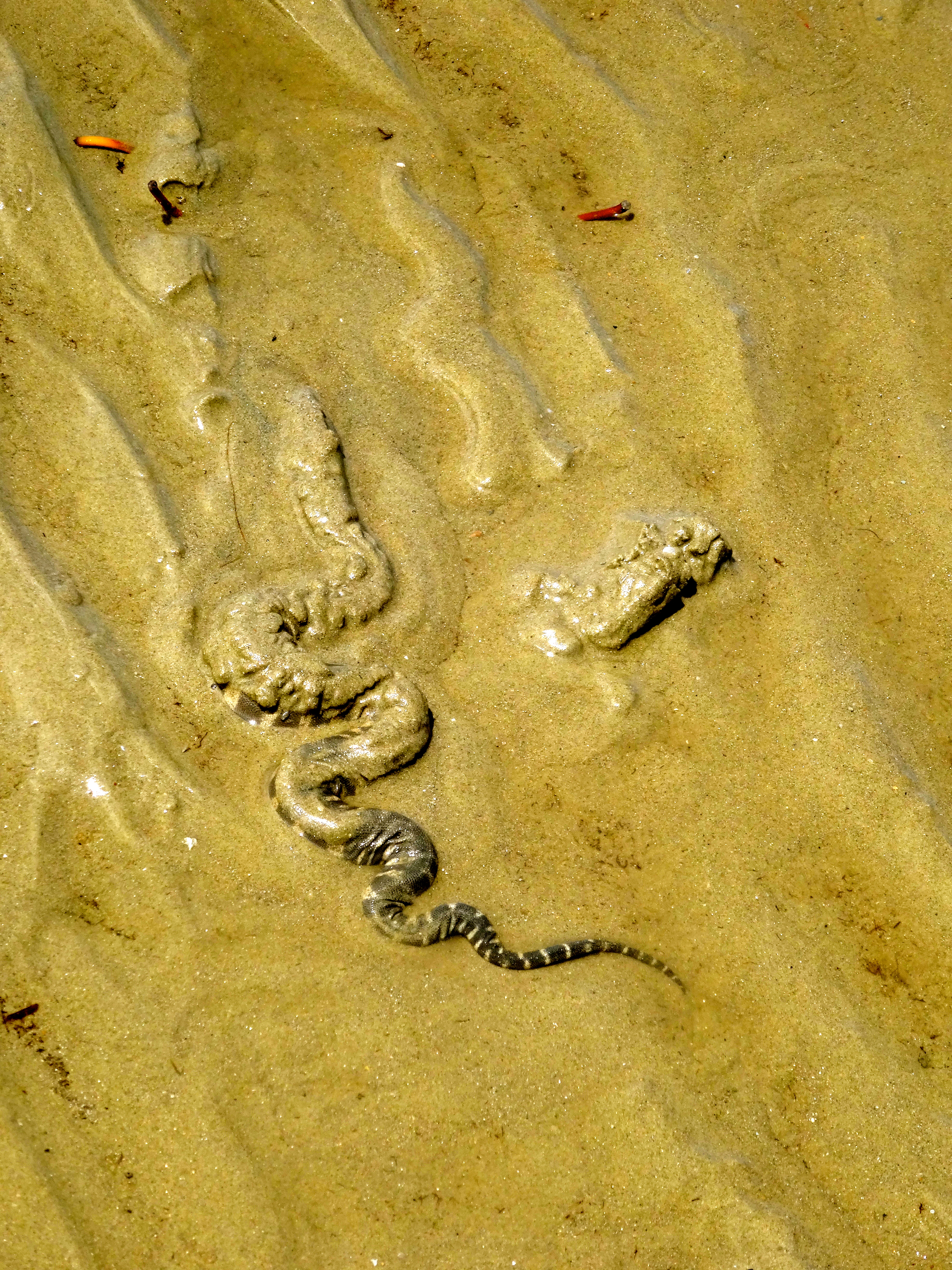 After a few more minutes, Marc, our driver and guide, called out to the group to let us know that he had found a sea snake. We had no interest in catching or eating it but he wanted us all to know where it was because it was rare to see and because it was extremely poisonous. We wouldn’t want to accidentally step on it. Fortunately, it is usually difficult for them to bite humans because there mouths are so small, but nonetheless, it was best to avoid it.